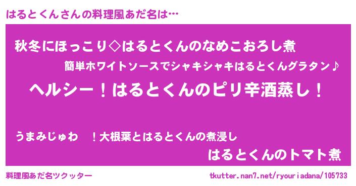 | 男性向けラノベタイトル風あだ名 | 『Re:はるとくんから始める異世界生活』 |