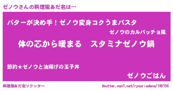 | ヘコむあだ名 | 『つくし』『ゼノにゅー』『ゼノを』 |