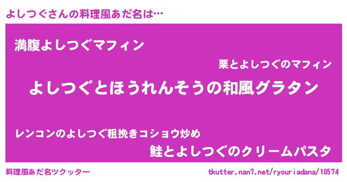 | 意味不明あだ名 | 『ヨモギ科よしつぐ属』『自称よしつぐ』 |