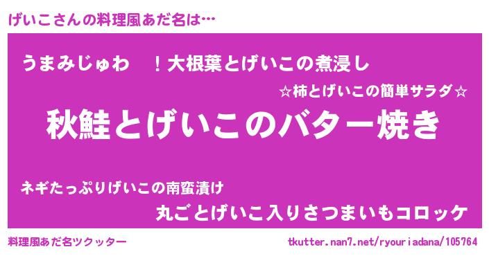 | 胡散臭い通販商品みたいなあだ名 | 『来世でも幸せになれる健康食品…その名も「げいこ」』 |