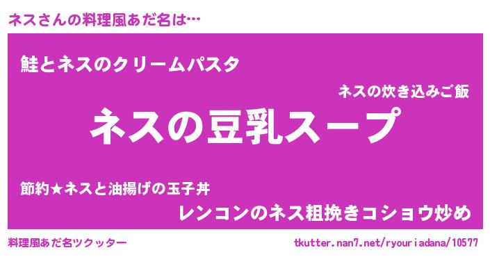 | 女子向けラノベタイトル風あだ名 | 『ネスは平凡を望む』『死神ネスの再婚』 |