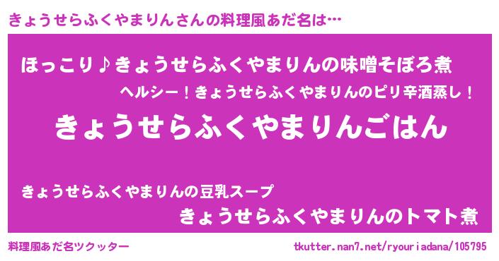 | 胡散臭い通販商品みたいなあだ名 | 『必ず成功するブレスレット…その名も「きょうせらふくやまりん」』 |