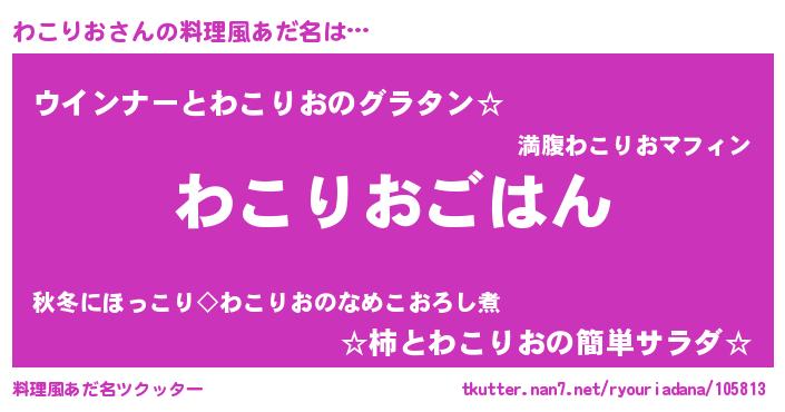 | ヒーロー風カッコイイあだ名 | 『ウルトラわこりおマン』『ネオワコリオ』 |