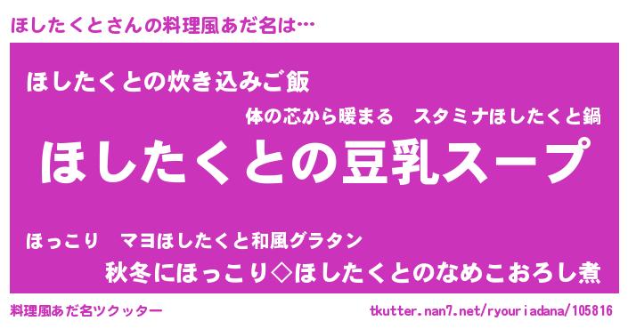 | 女子向けラノベタイトル風あだ名 | 『ほしたくとは平凡を望む』 |