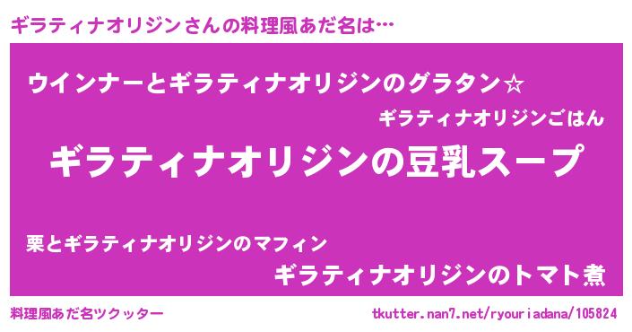 | ポケモン風あだ名 | 『ヒギラティナオリジン』『ギラテダネ』 |