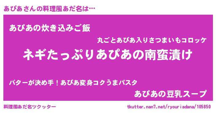 | ヘコむあだ名 | 『あぴにゅー』『あぴを』『牛乳』 |