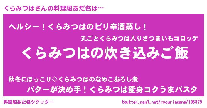 | 欧米人風あだ名 | 『くらみつは・ステッグマイヤー』 |