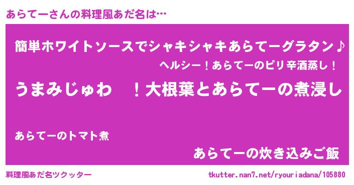 | ポケモン風あだ名 | 『アラテダネ』『ヒアラテー』 |