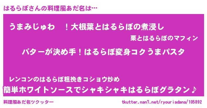 | ピコ太郎風あだ名 | 『ハハ太郎』『ピハ太郎』『ハル六郎』 |