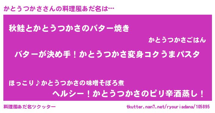 | ヒーロー風カッコイイあだ名 | 『愛の使者かとうつかさ』『仮面カトダー』 |