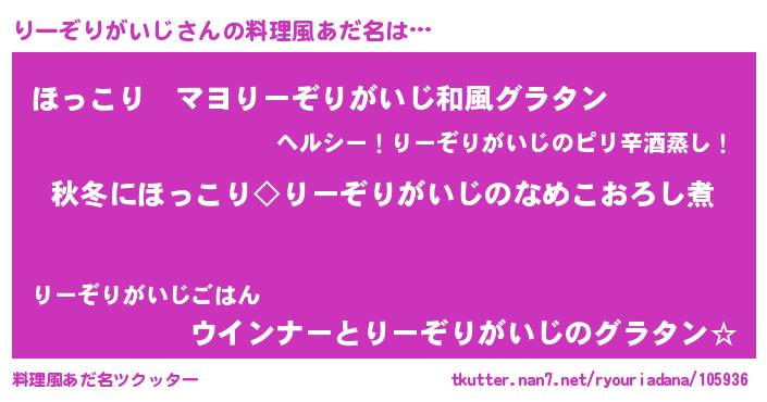 | ヘコむあだ名 | 『酢こんぶ』『りーぞりがいじ(爆)』 |