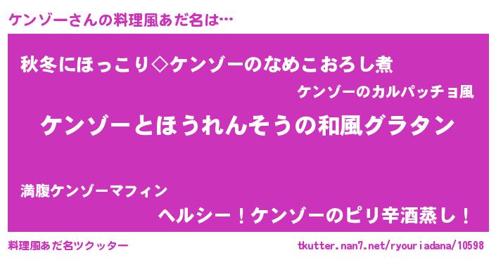 | ヘコむあだ名 | 『ケンゾー(震え声)』『ケンふぇ~』 |