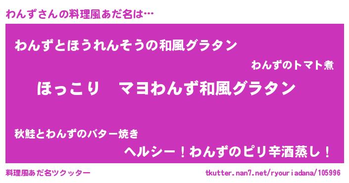 | 男性向けラノベタイトル風あだ名 | 『この素晴らしい世界にわんずを!』 |