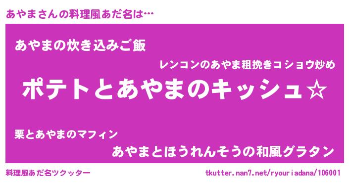 | ヘコむあだ名 | 『あや太郎』『なまこ酢』『あやにー』 |