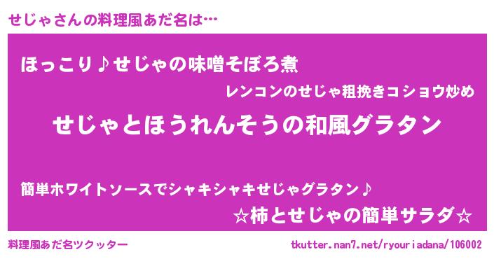 | ヘコむあだ名 | 『せじふぇ~』『せじを』『酢こんぶ』 |