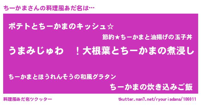 | 欧米人風あだ名 | 『ちーかまクリステル』 |