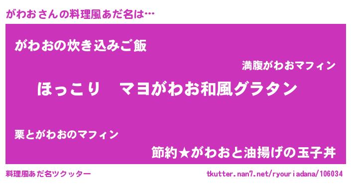 | 男性向けラノベタイトル風あだ名 | 『この素晴らしい世界にがわおを!』 |