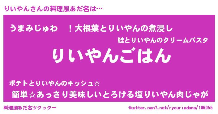 | ヘコむあだ名 | 『豆乳』『りいやん(爆)』『りいっ子』 |