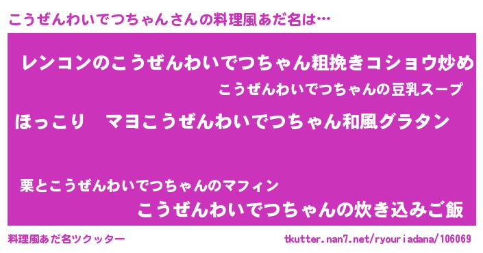 | 胡散臭い通販商品みたいなあだ名 | 『あなたにだけ特別に提供する100年もののヴィンテージワイン…その名も「こうぜんわいでつちゃん」』 |