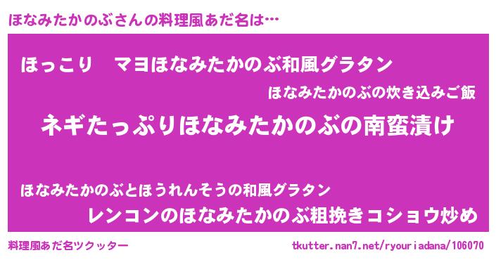 | ヘコむあだ名 | 『ほなにゅー』『ほなみたかのぶ(遠い目)』 |