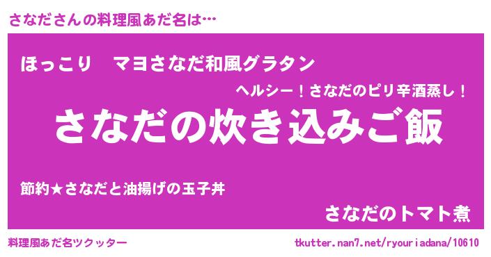 | ヒーロー風カッコイイあだ名 | 『仮面サナダー』『慈愛の使者さなだ』 |