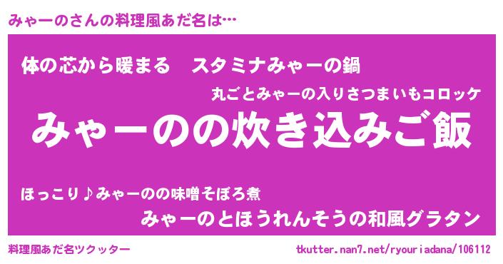 | 意味不明あだ名 | 『みゃーのフォーエバー』 |