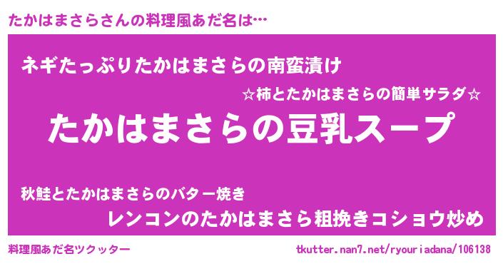 | ヘコむあだ名 | 『たかっ子』『たかもー』『なまこ酢』 |