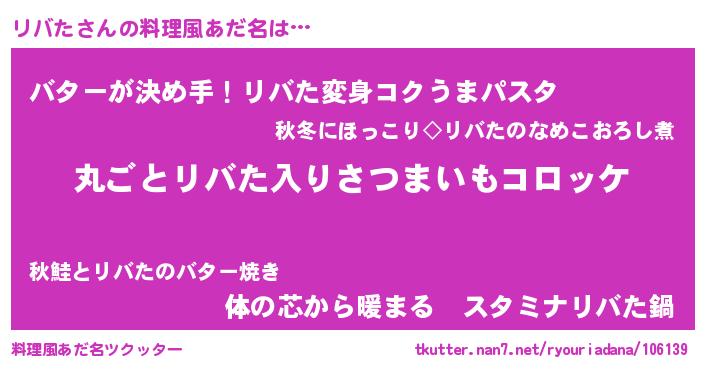 | 意味不明あだ名 | 『住所不定無職リバた(93歳)』 |