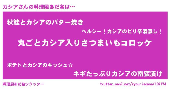| ヘコむあだ名 | 『カシア(笑)』『カシふぇ~』 |