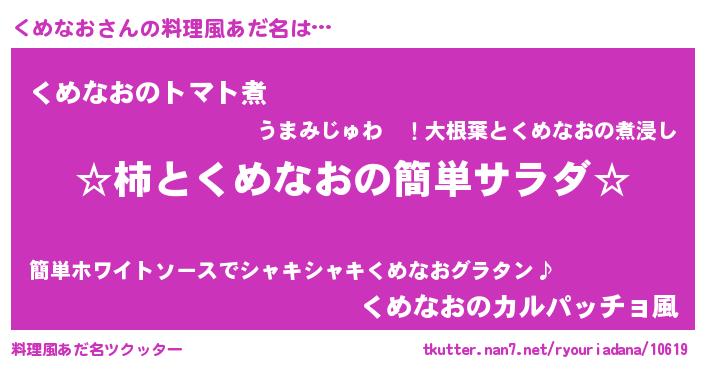 | 男性向けラノベタイトル風あだ名 | 『緋弾のクメナオ』『魔弾の王とくめなお』 |
