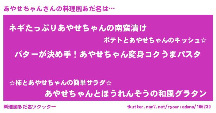 | ポケモン風あだ名 | 『アックウザ』『アヤチュウ』 |