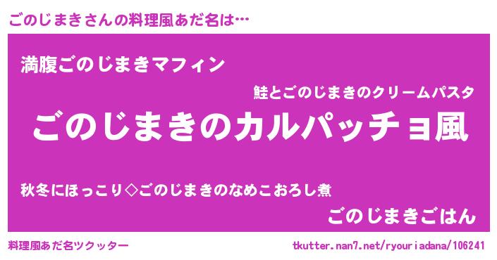 | 男性向けラノベタイトル風あだ名 | 『魔弾の王とごのじまき』 |