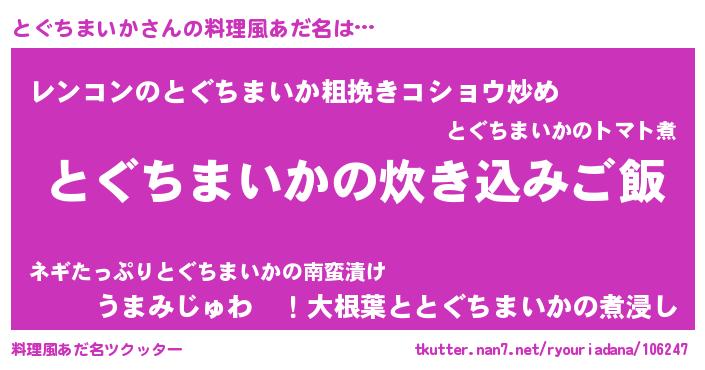 | 意味不明あだ名 | 『自称とぐちまいか』 |