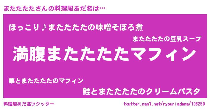 | 男性向けラノベタイトル風あだ名 | 『またたたたという概念が存在しない退屈な世界 』 |