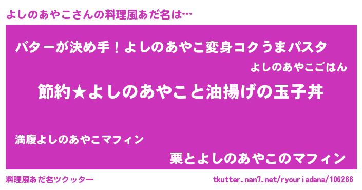 | ヘコむあだ名 | 『よしっふぃ~』『よしのあやこ(笑)』 |