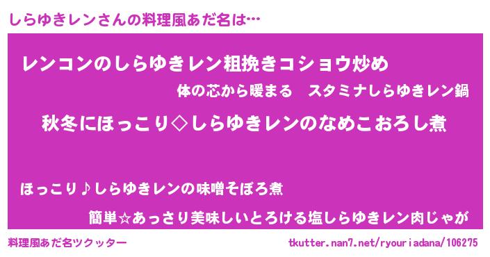| 男性向けラノベタイトル風あだ名 | 『しらゆきレンに滅ぼされるだけの簡単なお仕事です』 |