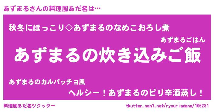 | 欧米人風あだ名 | 『あずまる・ステッグマイヤー』 |