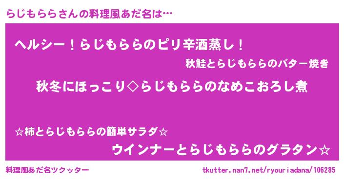 | 意味不明あだ名 | 『自称らじもらら』『永久保存らじもらら』 |