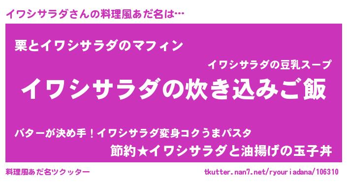 | 胡散臭い通販商品みたいなあだ名 | 『億万長者になれるブレスレット…その名も「イワシサラダ」』 |