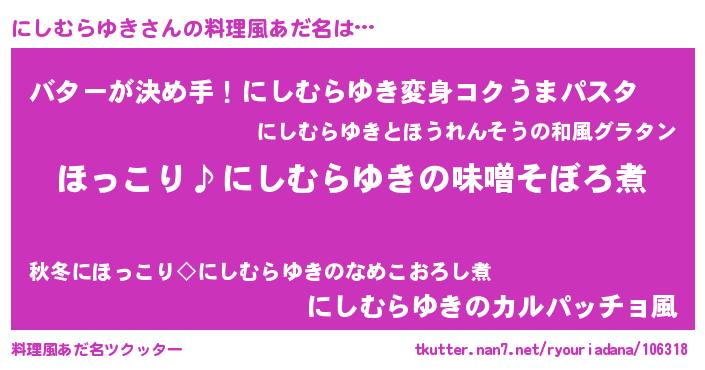 | 肩書あだ名 | 『にしむらゆきCEO』『にしむらゆき学部長』 |
