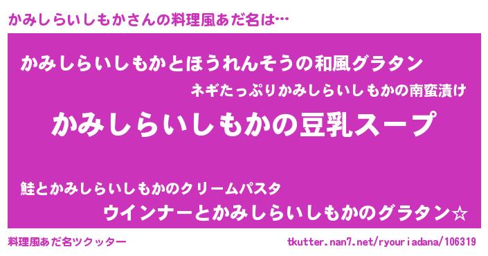 意味不明あだ名 | 『とにかく怪しいかみしらいしもか』 |