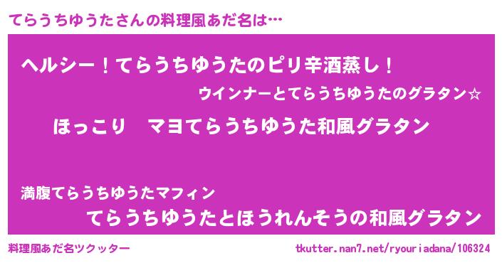 | 欧米人風あだ名 | 『ダレノガレてらうちゆうた』 |