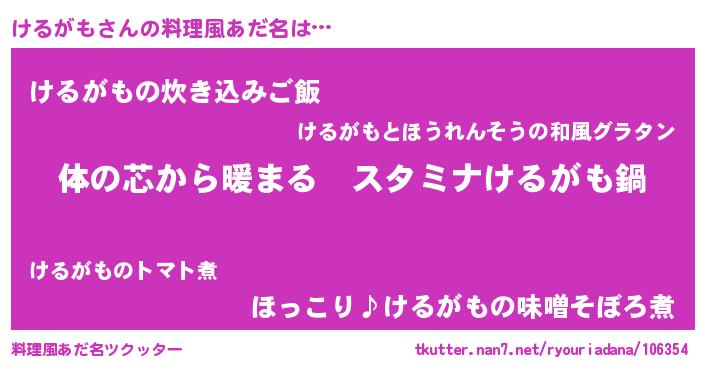 | 意味不明あだ名 | 『けるがもフォーエバー』 |