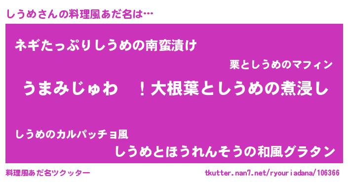 | 意味不明あだ名 | 『しうめフォーエバー』『ペロリンしうめ』 |