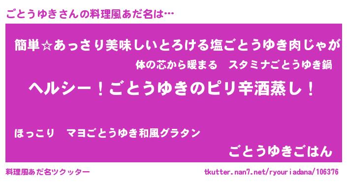 | ファンタジー風あだ名 | 『ゼゴトトゥ』『ゴトディッシュ』 |