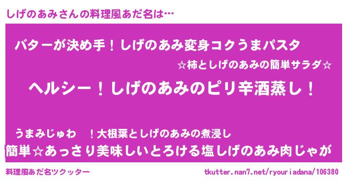 | 胡散臭い通販商品みたいなあだ名 | 『芸能人もオススメするアガリクス…その名も「しげのあみ」』 |