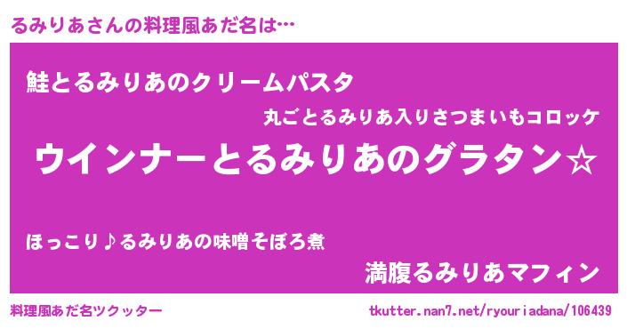 | 意味不明あだ名 | 『るみりあフォーエバー』 |