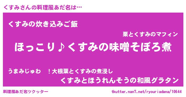 | ヘコむあだ名 | 『くすもー』『酢こんぶ』『くすっ子』 |