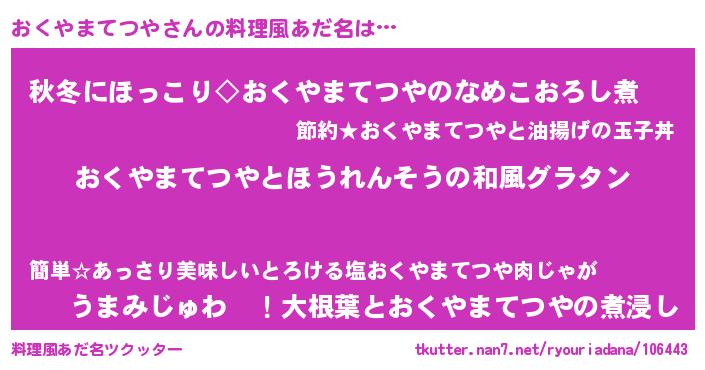 | 男性向けラノベタイトル風あだ名 | 『おくやまてつや~年齢イコール彼女いない歴の魔法使い~』 |
