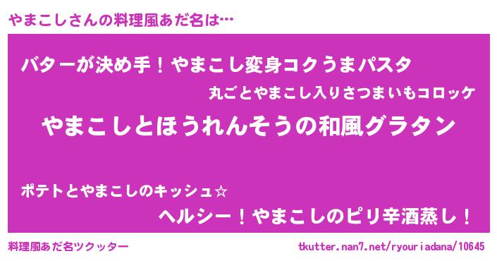 | 女子向けラノベタイトル風あだ名 | 『やまこしの玉の輿計画!』 |
